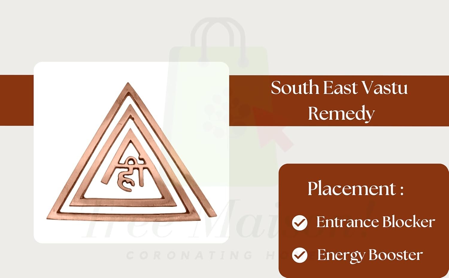 • This Copper helix is specially designed to activate & balance the fire (Agneya) element of the south-east corner. Place three or in multiple Helix at the south-east corner. This is one of the superb remedies for fire defects like wrong locations of the kitchen, main switches, inverter, etc.